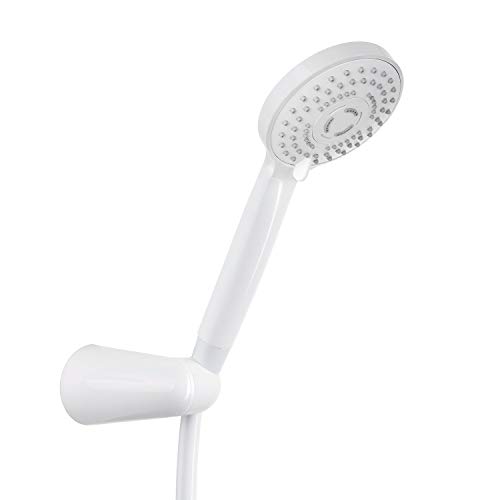 Set completo: doccetta con tubo doccia da 150 cm e supporto da parete in bianco