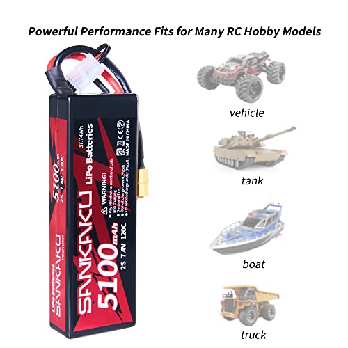 SANKAKU 2S 5100mAh RC Lipo Batteria 7.4V 120C Soft Pack con XT60 Plug per RC Veicoli Camion Serbatoio Auto Buggy Racing Hobby