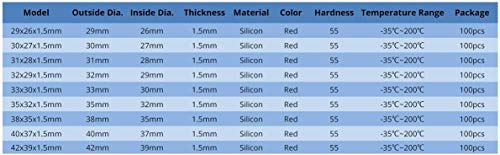 Sankuai 100pcs Red O-Ring Guarnizione 1,5 Millimetri di Spessore 29/30/31/32/33/35/38/40/42 Millimetri OD Gomma siliconica O Ring di Tenuta Rondelle (Taglia: 32x29x1.5mm)
