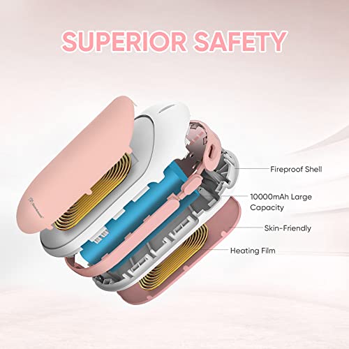 SanLead 10000 mAh Scaldamani Ricaricabile,2-IN-1 Scaldamani USB,Scaldino Mani Riscaldamento Fino a 13 Ore,Riscaldamento a Doppia Faccia,Adatto per Esterno Riscaldatore Portatile,Caccia,Campeggio Rosa