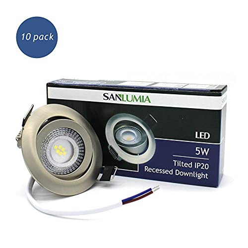 SANLUMIA | Faretti LED da incasso orientabili | LED 5W 450lm | extra piatto | senza sfarfallio | Angolo del Fascio di 100 Gradi | Bianco Freddo 6400K | Nichel Spazzolato | non dimmerabile | set da 10