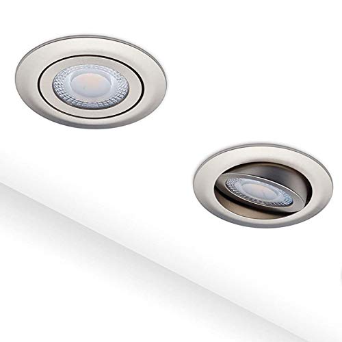 SANLUMIA | Faretti LED da incasso orientabili | LED 5W 450lm | extra piatto | senza sfarfallio | Angolo del Fascio di 100 Gradi | Bianca Calda 3000K | Nichel Spazzolato | non dimmerabile | set da 10