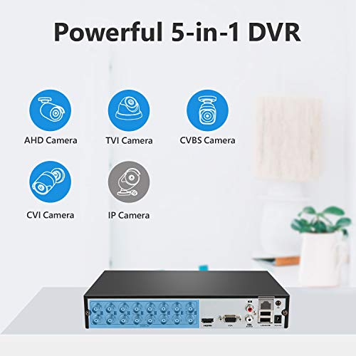*【Ampia compatibilità】: questo DVR 5-in-1 può funzionare 5 tipi di telecamere CCTV contemporaneamente, come TVI / CVI / AHD / telecamera analogica e telecamera IP compatibili