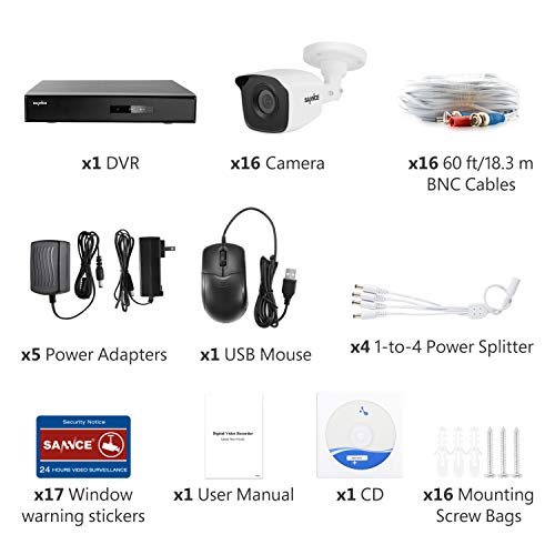 SANNCE Kit di sicurezza 16CH DVR 1080N 5-in-1 senza disco rigido + 16 telecamere sistema di sorveglianza 1080P IP66 impermeabile accesso remoto senza HDD
