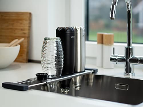 Niente più superfici bagnate - Le bottiglie gocciolano sul lavandino: Il gocciolatoio telescopico in acciaio inox permette di posizionare drip.it sopra qualsiasi lavello - estendibile a piacere da 32,5 a 56,5 cm. Non c'è bisogno di tappetini o vaschette di sgocciolamento, in quanto le bottiglie gocciolano direttamente nel lavello