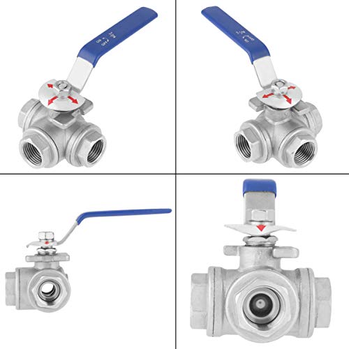 SANON Valvola a Sfera in Acciaio Inossidabile 1Pz 1/2 Tubo Sus304 Valvola a Sfera T-Port a Tre Vie Filetto Femmina Dn15