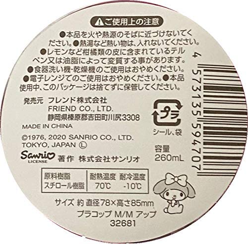 Sanrio My Melody - Tazze in plastica, 7,8 × 8,5 × 7,8 cm, 260 ml, piattini da cucina (rosa)