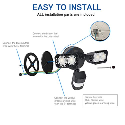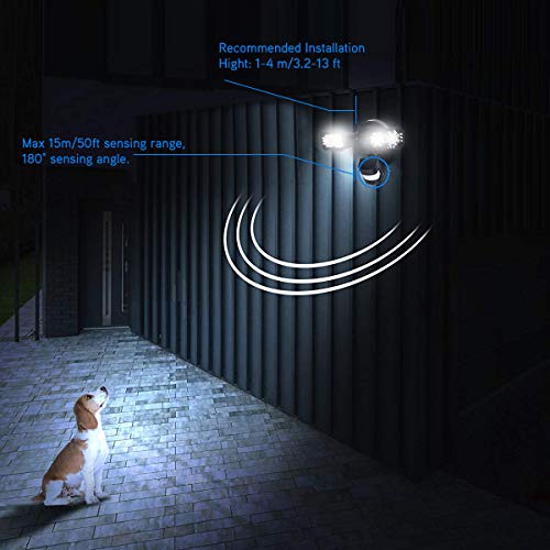 Prestazioni efficienti: questa luce di sicurezza da 18 W con doppi faretti LED ultra luminosi (4 chip LED ciascuno), genera fino a 1800 lm 5000 k di luce bianca fredda. Illuminazione per esterni efficiente per casa, garage, giardino, officina.
