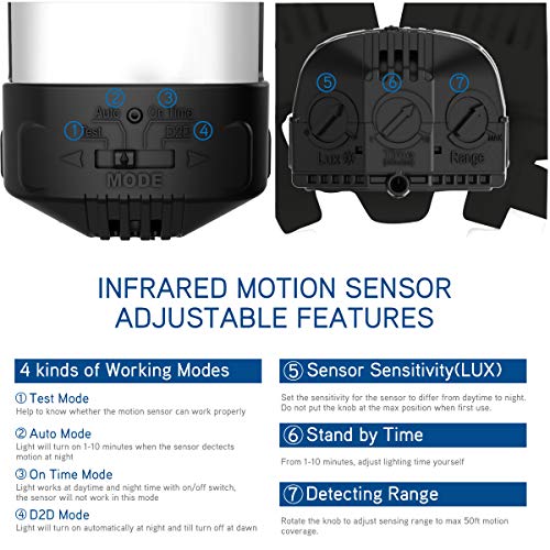 Qualità convincente (garanzia CE ROHS): Corpo robusto e compatto, eccellente tecnologia delle lenti di tenuta in ceramica per un'eccellente dissipazione del calore e prestazioni di lunga durata. Rivelatori di movimento sviluppati esattamente di recente forniscono un ambiente sicuro per le vostre famiglie.