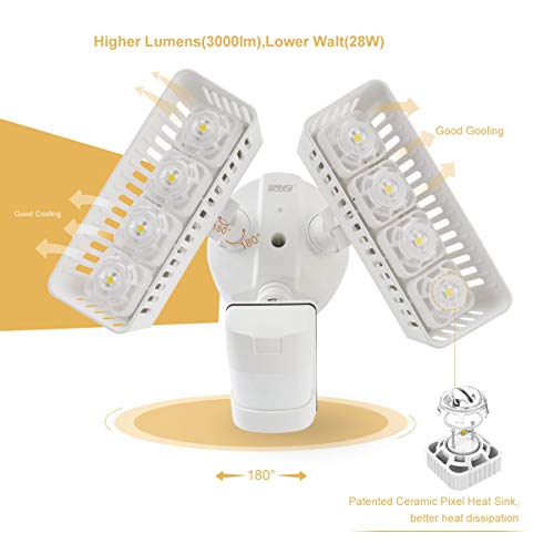➤ PRESTAZIONI SUPERIORI: 2 testine a LED ultra-luminose con 8 lampadine a LED (dissipatore di pixel), producono fino a 3400lm di luce bianca chiara ad alta luminosità con soli 30 W, fornisce un'illuminazione efficiente per l'ambiente esterno e aggiunge ulteriore sicurezza per la tua casa. Risparmia l'88% sulla bolletta della luce.