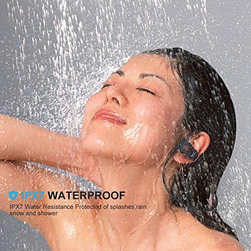 【IPX7 impermeabile】-- Dotato di trattamento nano-rivestimento e guscio resistente all'acqua, questo auricolare è di IPX7 impermeabile che può proteggerlo da acqua, pioggia o danni in doccia, e vi permette ancora di godere la vostra musica preferita e mantenere le telefonate non importa nei giorni di pioggia o in esercizio con un sacco di sudore.