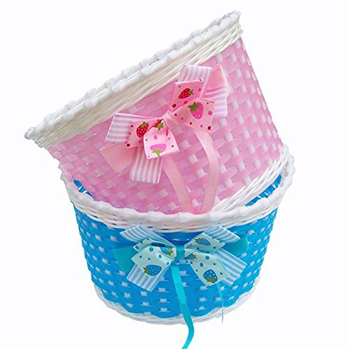Sansund - Cestino anteriore per bicicletta per bambini, design con fiocco, in tessuto intrecciato, per bambine, ragazzi, bicicletta, cestino anteriore per la spesa, facile da montare Nero