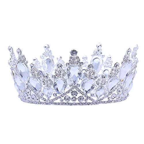 Santfe - corona / diadema / tiara da donna, accessori per capelli, per spose e matrimoni, diametro 14 cm, in lega e argento, colore: White, cod. HG00068