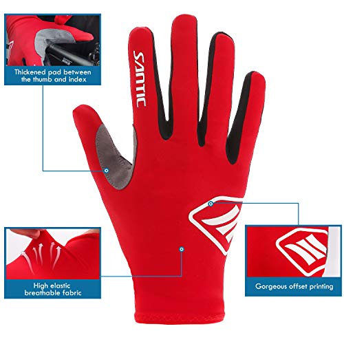 Santic Guanti Ciclismo Invernali Guanti Bici MTB Guanti Bicicletta de Corsa Lunghi Touch Screen per Uomo e Donna Ciclista Rosso L