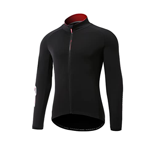 Santic Magliette Ciclismo Uomo Lungo Maglia Ciclismo Uomo Invernale Bicicletta Camicie Nero EU XXXL