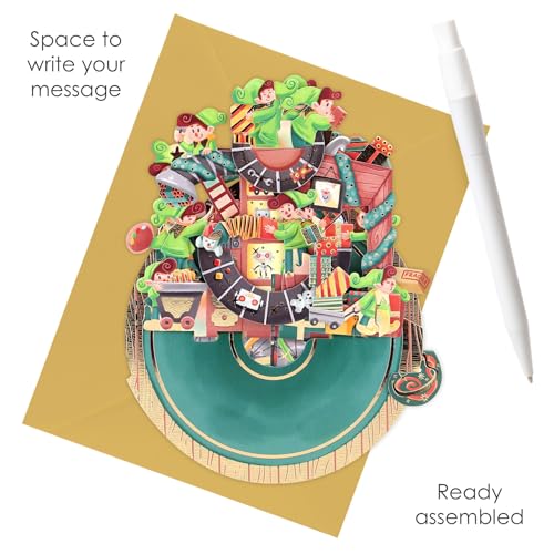Santoro Pirouette, Biglietto di auguri pop-up 3D, natalizio, motivo laboratorio di Babbo Natale, per bambini, familiari, uomini e donne