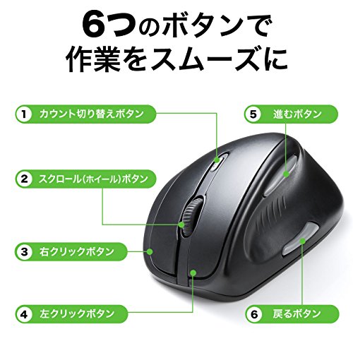 Sanwa Direct Wireless Ergonomic Mouse Ir Sensor 6 Button Count Switching JP F/S