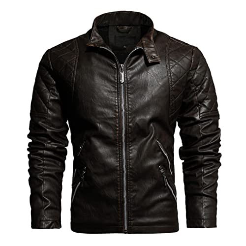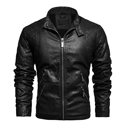 Sanykongy Giacca in Pelle Uomo Giacca con Colletto alla Moin Pelle PU Vintage Vintage Black L