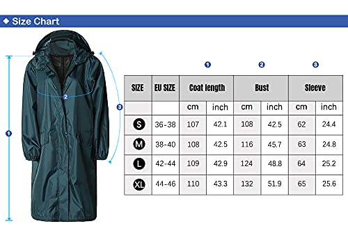 SaphiRose PONCHO Giacca da Pioggia Lungo Cappuccio da Donna Leggero Impermeabile Antivento Blu Scuro M