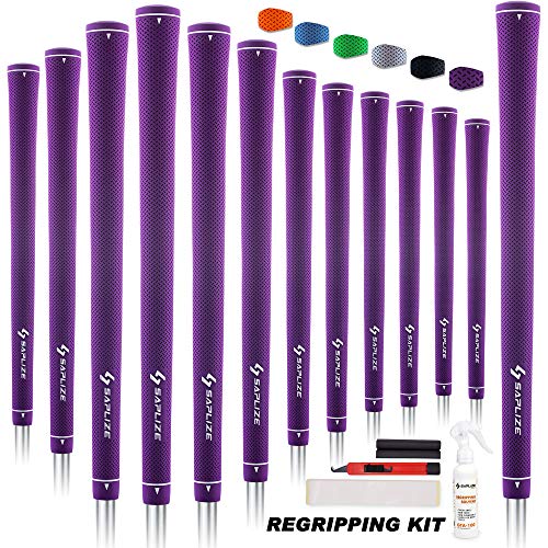 SAPLIZE Manopole da golf in gomma, di medie dimensioni, viola, 13 manopole con kit completo di regripping kit, impugnatura per mazze da golf