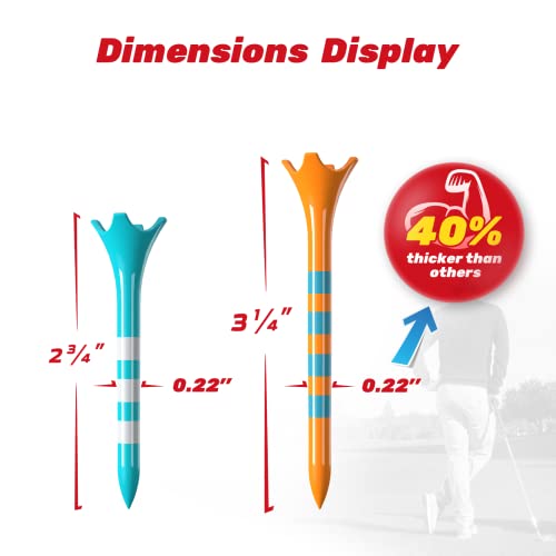 SAPLIZE Tees da golf in plastica ultra resistenti e spesse, confezione da 100 (3-1/4"), più stabili tee da golf, riducono l'attrito e le magliette laterali in plastica, arancione