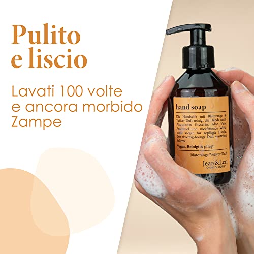 Jean & Len Sapone per le mani Arancia rossa e Vetiver, deterge delicatamente, sapone liquido in dispenser a pompa, profumo fruttato-legnoso, senza parabeni, siliconi e microplastiche, vegan, 250 ml