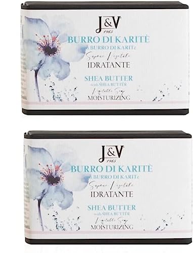 J&V 1965 Sapone artigianale naturale, detergente per il viso e il corpo. Confezione da 2 Saponette (100+100 gr.) (Burro di Karitè)