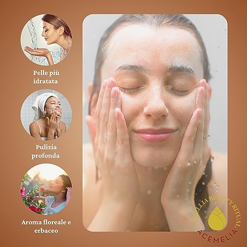 PULIZIA E IDRATAZIONE PROFONDA: Il nostro sapone viso artigianale di Acemelia è appositamente formulato per pulire e idratare in profondità la tua pelle. Goditi una pelle morbida e radiosa grazie al potere idratante dell'olio di camelia, combinato con olio di oliva e cocco di alta qualità.