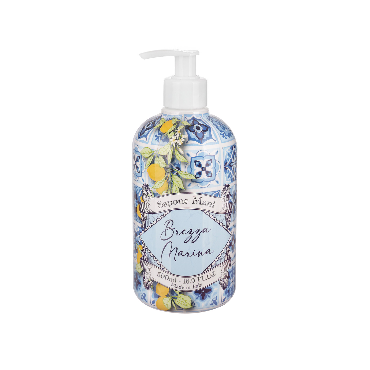 Sapone per le mani della linea Agrumi con confezione dalla grafica accattivante ispirata alle maioliche e ai limoni del Mediterraneo. Il suo design originale e colorato si presta per essere posizionato in bella vista accanto al lavandino in bagno, sempre pronto all'uso. La profumazione alla brezza marina sarà delicata sulla pelle e lascerà le tue mani profumate e idratate ogni giorno. Grazie al dosatore integrato non rischierai di sprecare nemmeno una goccia! Quantità: 500 ml. Ingredienti: Aqua, Sodium laureth sulfate, sodium chloride, parfum, cocamidopropyl betaine, hexyl cinnamal, glycerin, citric acid, methylchloroisothiazolinone, methylisothiazolinone .