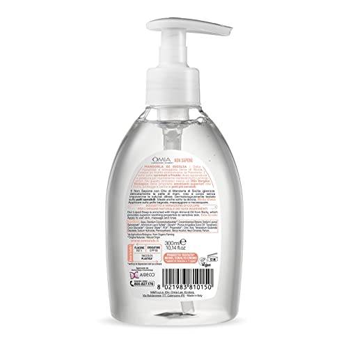 Omia, Non Sapone Eco Bio Olio di Mandorla di Sicilia, Sapone Liquido Per Mani e Viso - Ottimo per Pelli Secche e Delicate - Dermatologicamente Testato, Senza Parabeni e Siliconi, Nichel Free - 300 ml