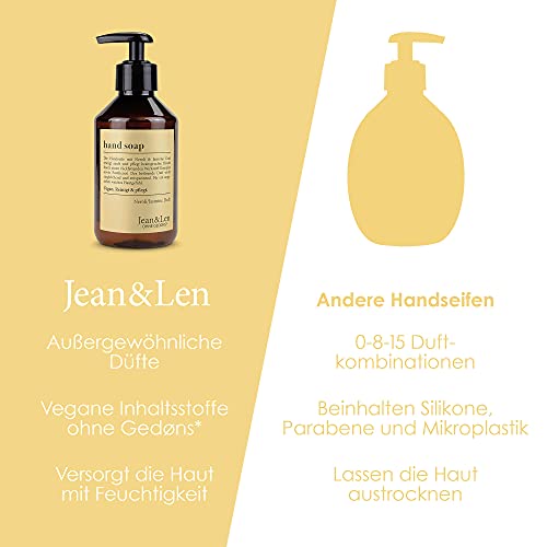 Il sapone per le mani Jean e Len non solo ha un buon profumo, ma pulisce e cura delicatamente le mani sporche ed è ideale per l'uso quotidiano - Prodotto con amore in Europa
