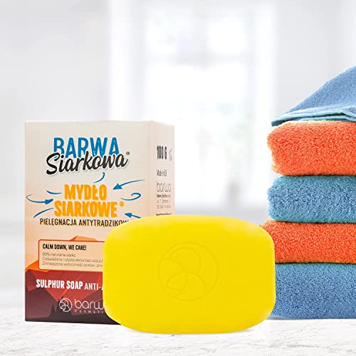 Sapone allo zolfo per brufoli BARWA 100g - Sapone viso rinfrescante ideale per pelli grasse contro acne e punti neri - Sapone solido per viso, mani e corpo [sapone naturale]