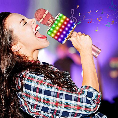 ♫ Suono magico con luci a LED - Il microfono wireless è dotato di cinque modalità audio: suono originale, voce di bambino, voce femminile, voce maschile e voce di vecchio. Luci a LED colorate integrate, che sfarfallano con la musica e il tuo canto, per creare un'atmosfera di canto perfetta per festival o feste.