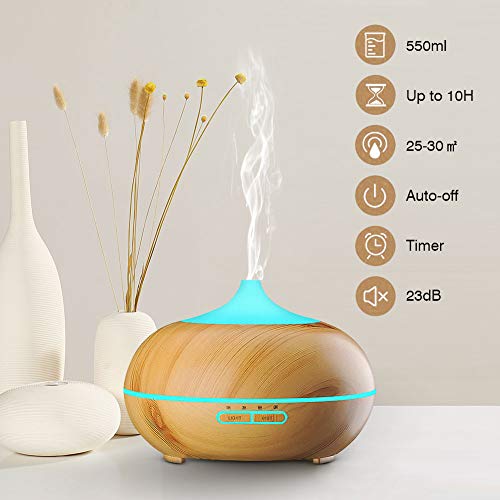 SaponinTree Diffusore di Oli Essenziali Ultrasuoni, 550ml Diffusore di Aromi Ultrasuoni con 7 colori LED Selezionabili, Purificatore Aria, per Yoga, Camera da Letto, Soggiorno
