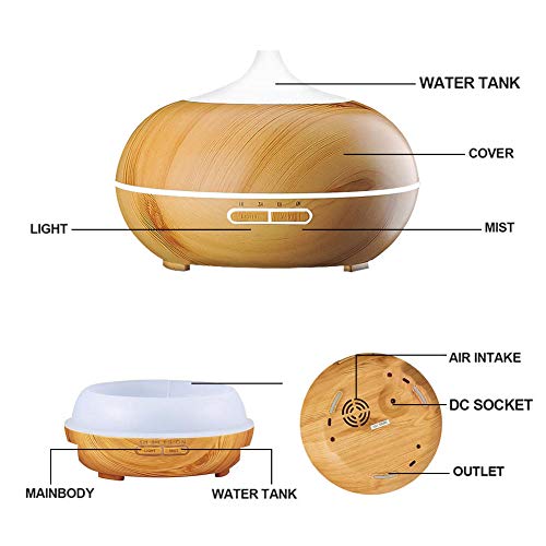 ❤550 ML Diffusore di olio ad alta capacità❤ Il potente umidificatore possiede l'enorme capacità di 550 ml, genera da 30 a 50 ml di umidità all'ora, non troppo grande, non troppo piccolo. Rinfresc