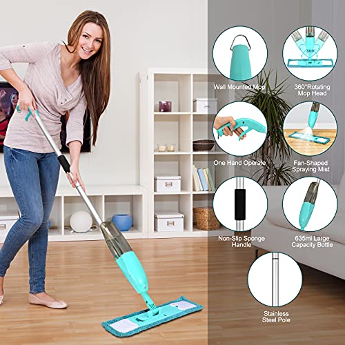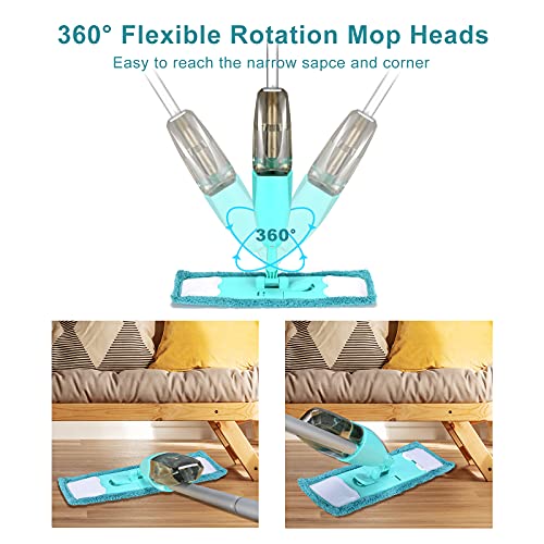 Facile da Pulire: Questo mop spray è dotato di un flacone spray di grande capacità a tenuta stagna da 635 ml, che è più conveniente per la pulizia del pavimento, la disinfezione e la rimozione degli odori. La testa del mop può essere ruotata di 360 gradi, con questa testa rotante flessibile, il mop può essere facilmente pulito negli angoli stretti