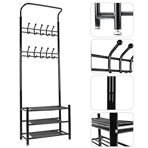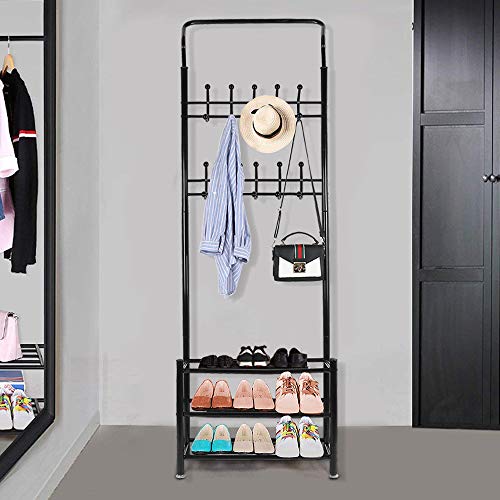 Sarah Appendiabiti, Appendiabiti da Terra, Guardaroba Stile Moderno, con Scarpiera, 3 Ripiani e 20 Ganci, per Ingresso, Soggiorno, Camera da Letto,corridoio (Nero)