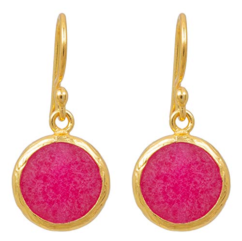 SARAH BOSMAN - Orecchini da donna in oro e giada rosa - Orecchini rotondi in argento placcato oro con gemma rosa - diametro 14 mm - SAB-E03PINJADg