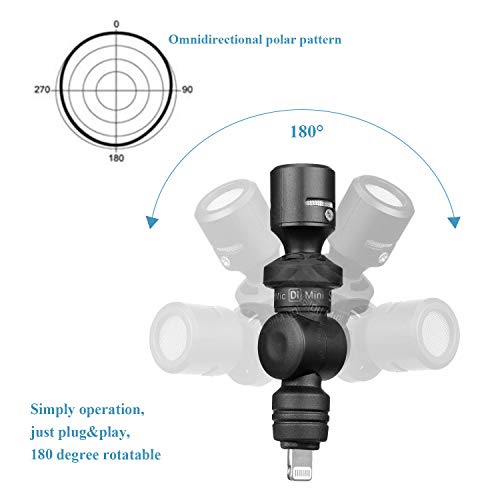 PLUG&PLAY: Il microfono iphone non necessita di alimentazione a batteria, basta collegare un dispositivo iOS come iPhone, ed è pronto per l'uso, non sono necessarie altre impostazioni.