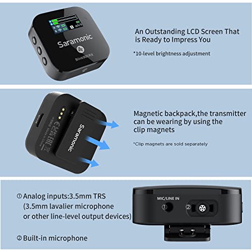 Saramonic Sistema microfono wireless, Blink900 B2 Ultracompact Microfono a doppio canale per DSLR, Mirrorless, Videocamere, Dispositivi mobili Youtube Facebook Live
