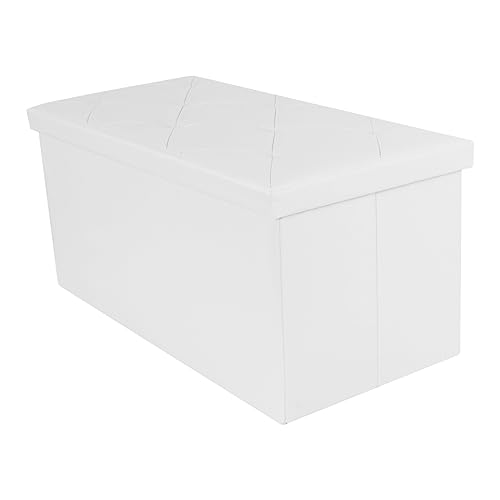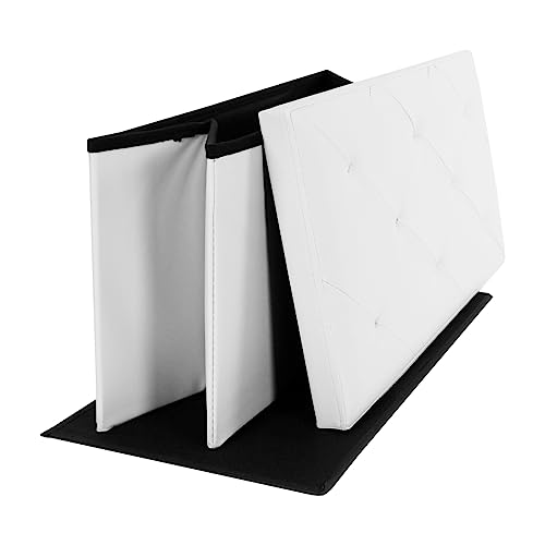 SaRani Pouf Portaoggetti Ripiegabile Cassa Panca Contenitore con Coperchio Trapuntato a Rombi Ecopelle (Bianco)