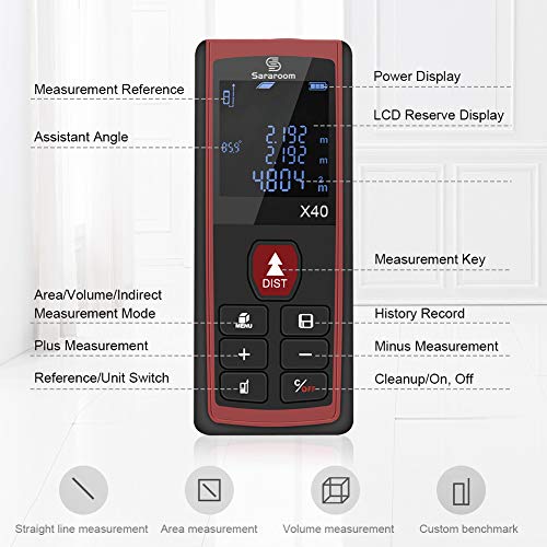 Sararoom Metro Laser HD 40m Telemetro Misuratore Laser Digitale Professionale Distanziometro Laser Distanza Portatile Con 2 Livelli a Bolla e Display Retroilluminato