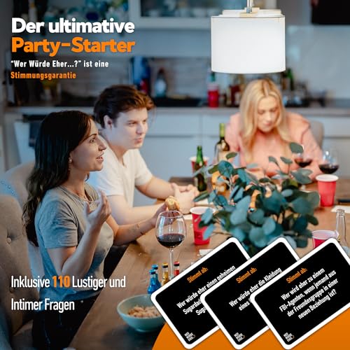 GARANZIA DI AMORTO - Hai paura che la tua festa diventi un vero capolavore? Nicht mit Wer würde Hochzeit! 110 carte da gioco con le domande più divertenti sono la garanzia di divertimento per la tua festa! Metti fine alla noia alle feste! ♻