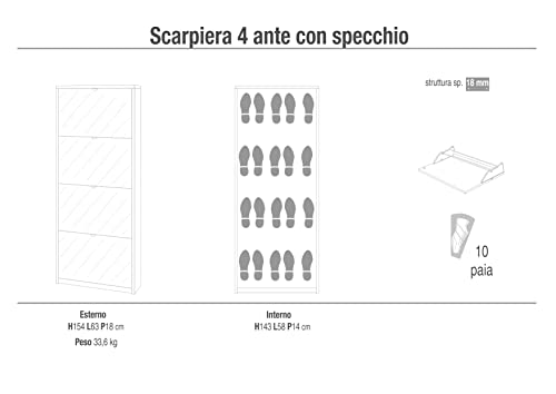Sarmog Kit SCARPIERA 4 Ante con RIBALTA E Specchio Frontale H154 L63 P18 Cm Finitura Bianco Sk554spk