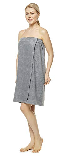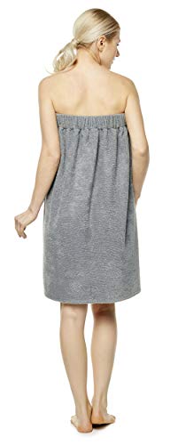 Arus Sarong da Sauna da Donna | Chiusura a Strappo ed Elastico | 100% Cotone Organico | Certificato GOTS, Grigio, S/M