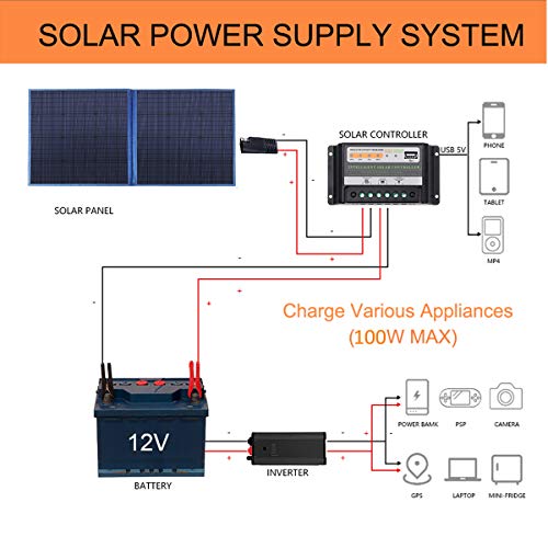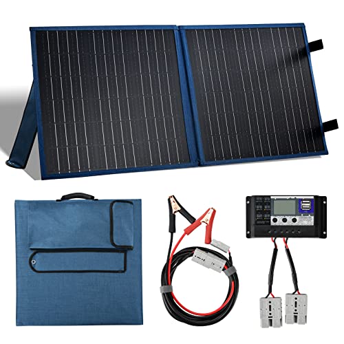 SARONIC Pannello solare pieghevole portatile 100 W 12 V con regolatore di carica solare 10 A per camper, camper, camper, camper, camper, camper, sistema 12 V per uffici mobili