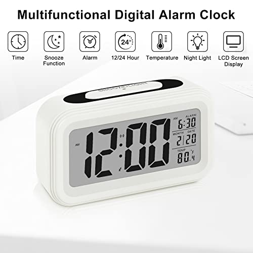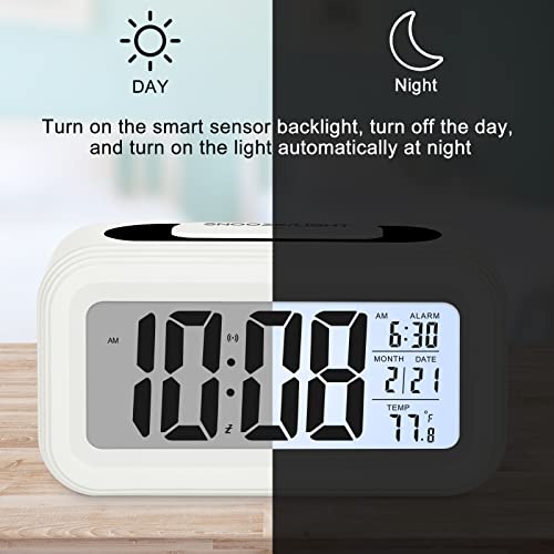 Sarsumir Sveglia Digitale, Sveglia da Comodino Silenziosa smart a Batteria con Luce Notturna a LED Orologio Digitale con Funzione Snooze Data Temperatura per Bambini Ragazza Ragazzo Adulti, Bianco