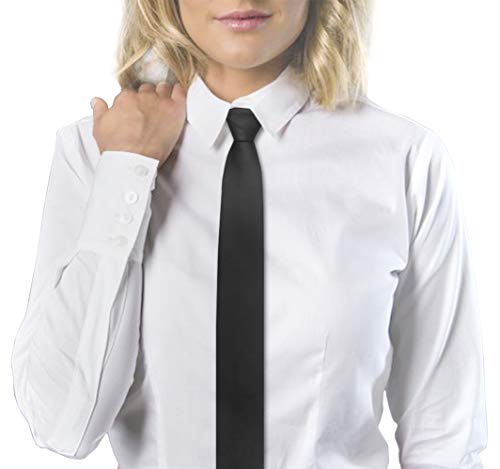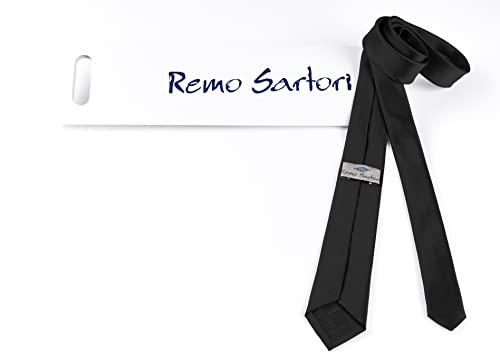 Remo Sartori - Cravatta Donna Stretta Slim in Seta Tinta Unita, Larghezza cm 5.5, Made in Italy (Nero)