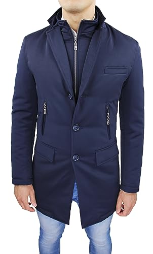 Mat Sartoriale Giubbotto Giacca Uomo Blu Scuro Lungo Slim Fit Giaccone Soprabito Casual Elegante (M)