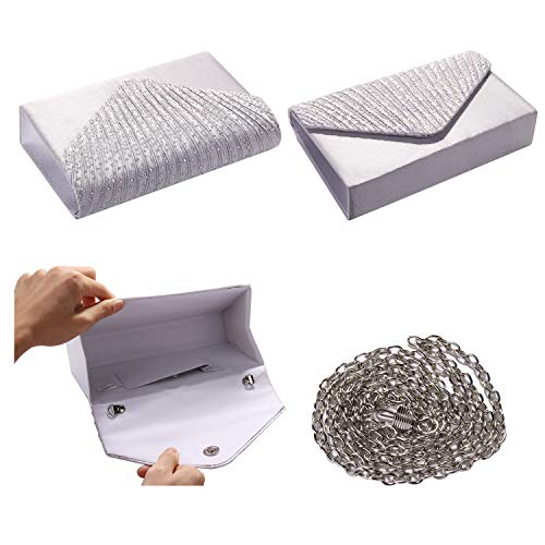 Sasairy 21x13x5cm Donna Pochette a Busta Eleganti con Strass da Cerimonia Piccolo Mini Sera Borsa della Sposa Matrimonio Regalo di Compleanno-Argento